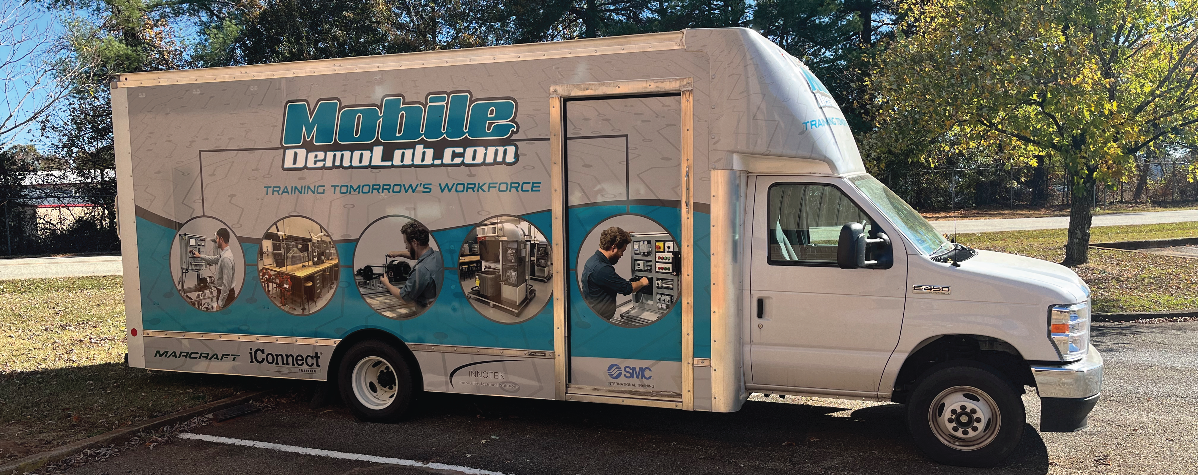 We would like to introduce the Mobile Demo Lab. It is built on a Ford E-450 platform, which houses several different types of Mechatronics and Information Technology Training Equipment.